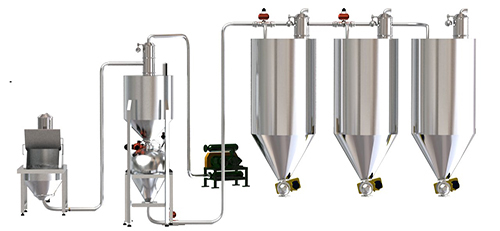 当小袋物料需解袋并倒入下一道工序时,只需人工直接拆包后投入该系统即可。投料时所产生的物料粉尘由集尘风机进行收集。
